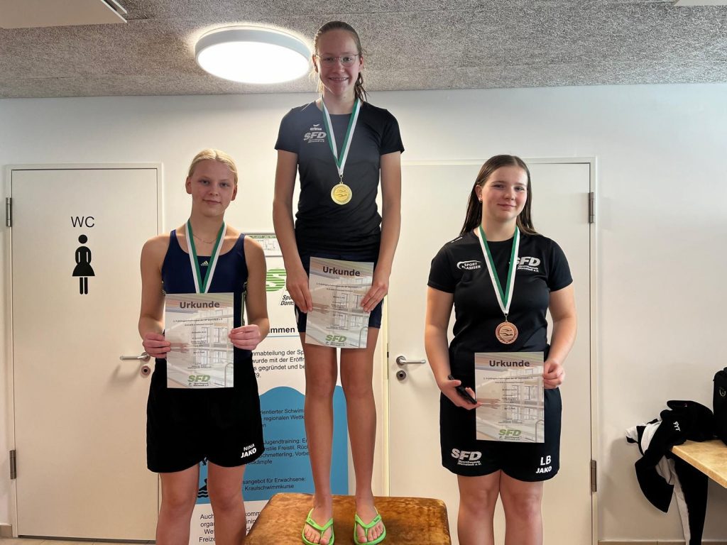 Greta Moeller: 1. Platz (100m Brust), 2. Platz (50m Brust), 2. Platz (200m Brust)